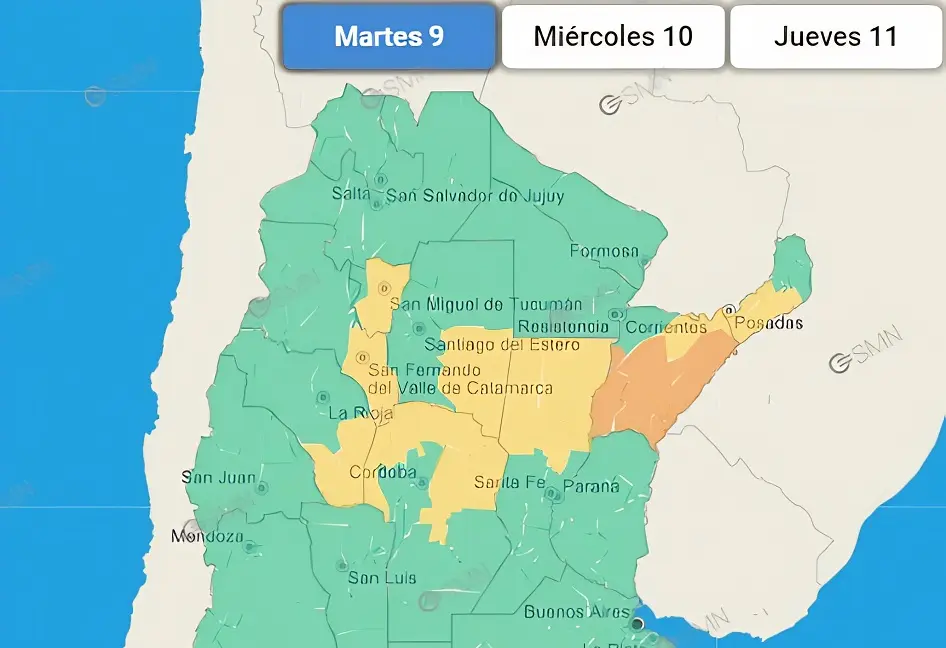 Según el informe del SMN, el área será afectada por tormentas, algunas localmente fuertes. Las mismas pueden estar acompañadas por ráfagas intensas, importante actividad eléctrica, caída de granizo y abundante caída de agua en cortos períodos de tiempo.