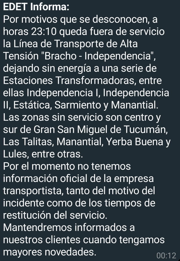 La noche del domingo, varios barrios de San Miguel de Tucumán y otras localidades de la provincia se vieron afectados por un extenso corte de luz. El apagón, reportado por vecinos desde las 23:00, dejó sin suministro eléctrico a zonas céntricas y barrios como Norte y Sur, así como a otras áreas.