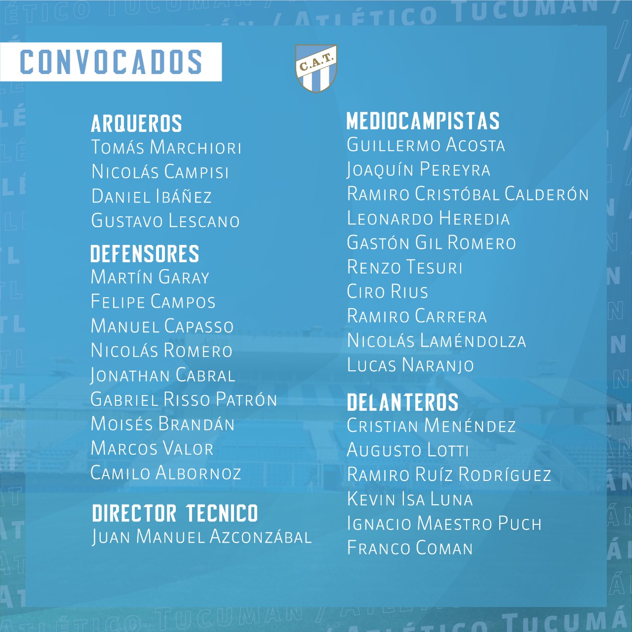 Atlético Tucumán confirmó el plantel de jugadores que participaran en Buenos Aires