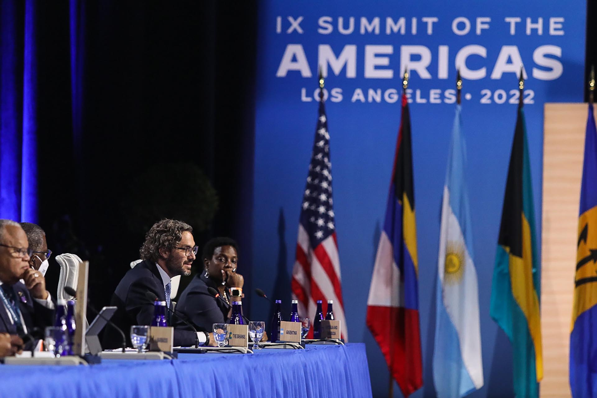 El canciller Santiago Cafiero participó este miércoles de la reunión de ministros y ministras de Relaciones Exteriores de la IX Cumbre de las Américas que se desarrolla en la ciudad de Los Ángeles, Estados Unidos. Allí cargó contra las sanciones y bloqueos que pesan sobre Venezuela y Cuba, países que no fueron invitados por violar sistemáticamente los derechos humanos en sus países y no cumplir con los estándares más básicos de una democracia.