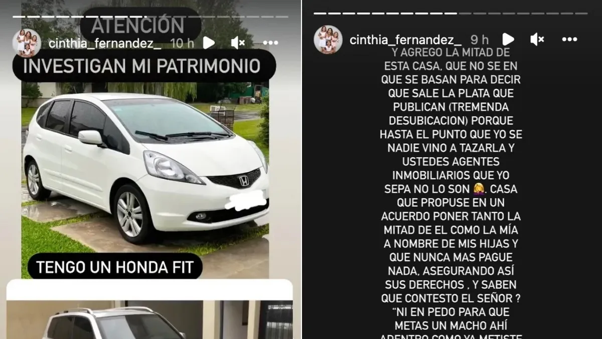 Además, Cinthia aprovechó para aclarar: “Para información de la señora, era mi plata porque correspondía al valor de 2 autos míos anteriores, que nunca vi la plata de esa venta (uno ganado en lo de Susana y otro comprado cuando no lo conocía a él)”.