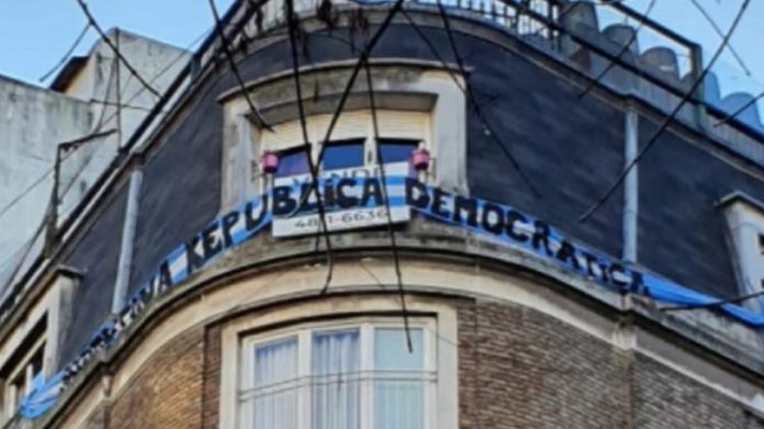 Pasadas las 16.30 cientos de personas se congregaron en la esquina de Juncal y Uruguay, en el barrio de Recoleta, y se encontraron con una bandera sobre el balcón de la ex mandataria que decía “República Argentina Democrática”.
