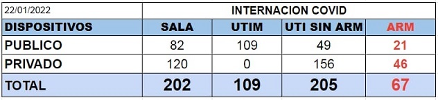 Además, Salud detalló que hasta la fecha hay 205 pacientes internados en unidades de terapia intensiva sin asistencia respiratoria mecánica y 67 con respirador entre el sector público y privado.
