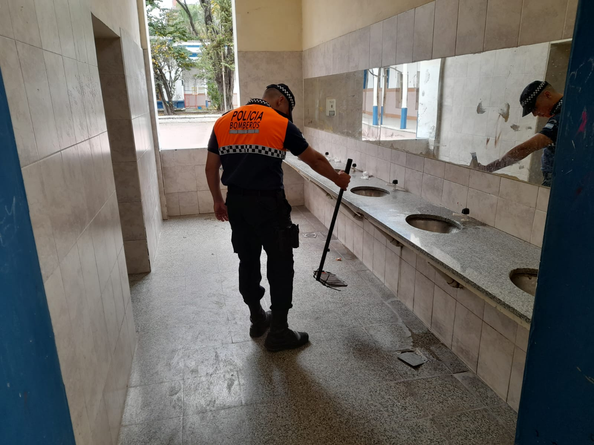 En el lugar estuvo presente el Subcomisario Adrián Puentes, Jefe de la División Delitos Telemáticos; y personal policial del Distrito Urbano N° 1, quienes se abocaron al corte de tránsito durante la evacuación de alumnos y docentes.