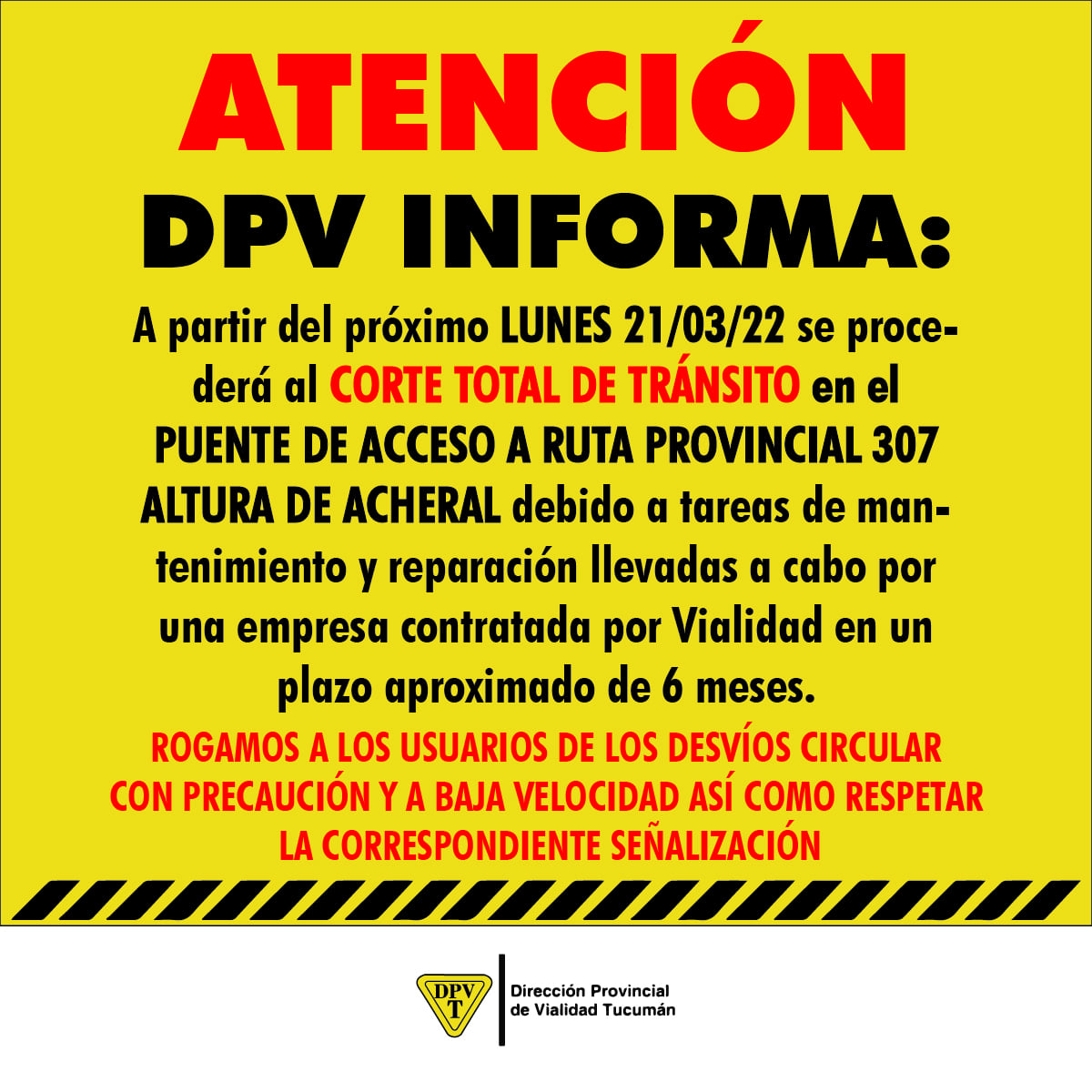 Este viernes, la Dirección Provincial de Vialidad de Tucumán informó en sus redes sociales una obra de mantenimiento que afectará la subida a los Valles Calchaquíes durante un tiempo de seis meses: “En el marco del inicio de la obra de reparación y mantenimiento en Ruta Provincial Nº 307 ponemos en conocimiento a los usuarios y dejamos a disposición las correspondientes alternativas de circulación en zona de los Valles” escribieron.