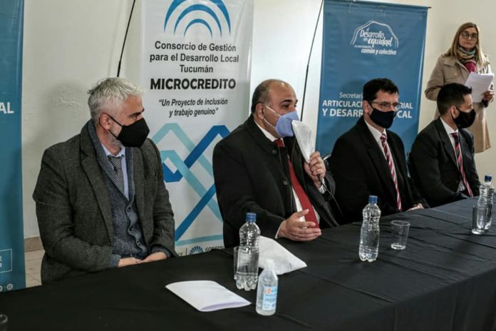 El Consorcio de Microcréditos de Tucumán es el primero en ejecutar el convenio con la Comisión Nacional de Microcréditos. En el acto realizado en el Sindicato de Trabajadores de la Vivienda (Sitravi) funcionarios provinciales conversaron por videoconferencia con el coordinador de la Comisión Nacional de Microcréditos (Conami), Alberto Gandulfo.