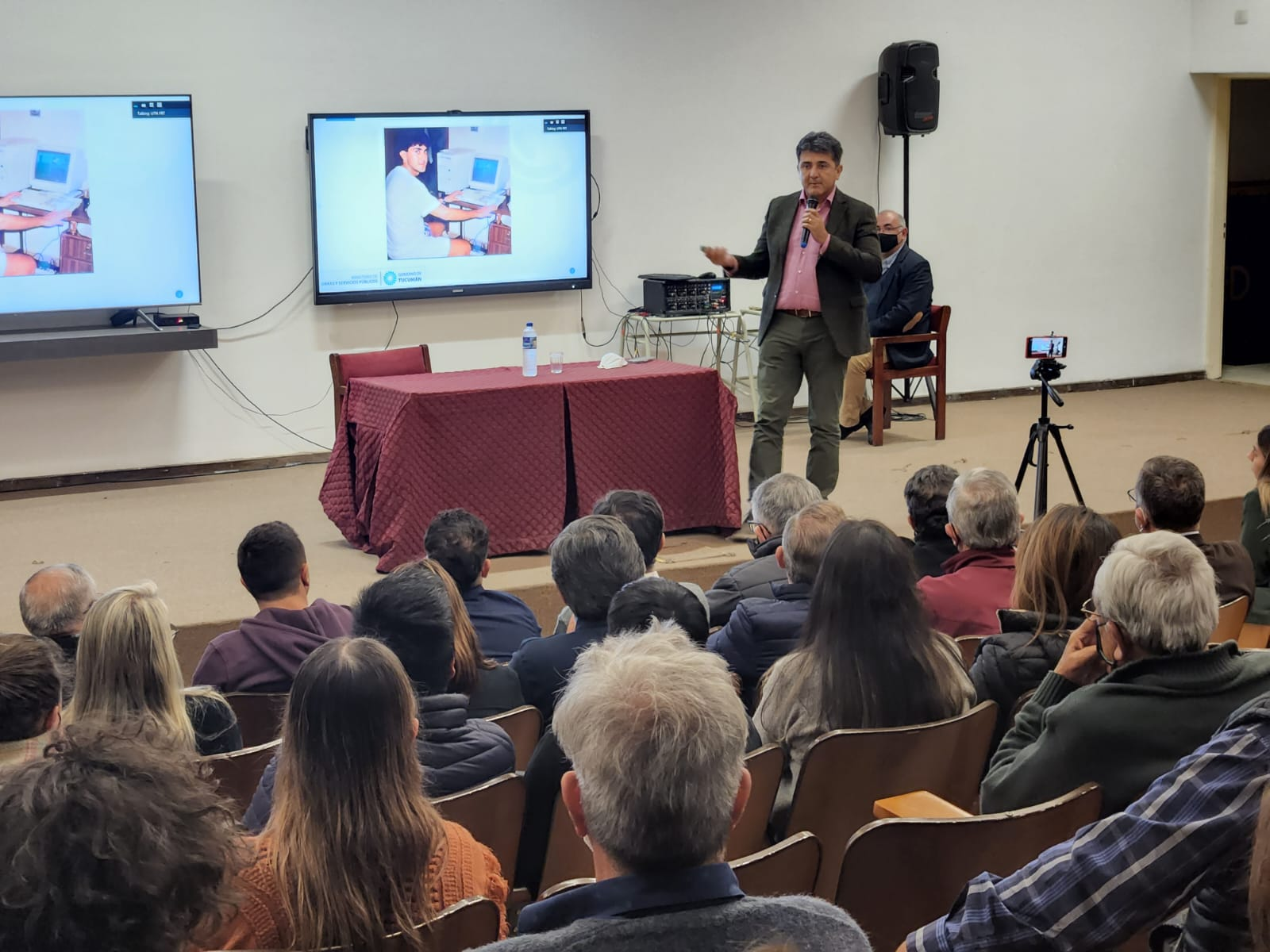 La charla se llevó a cabo a sala llena en el Aula Magna del Centro Cultural “Recalcatti” y de la misma participaron colegas, alumnos y docentes de la facultad acompañando al Ing. Soria.