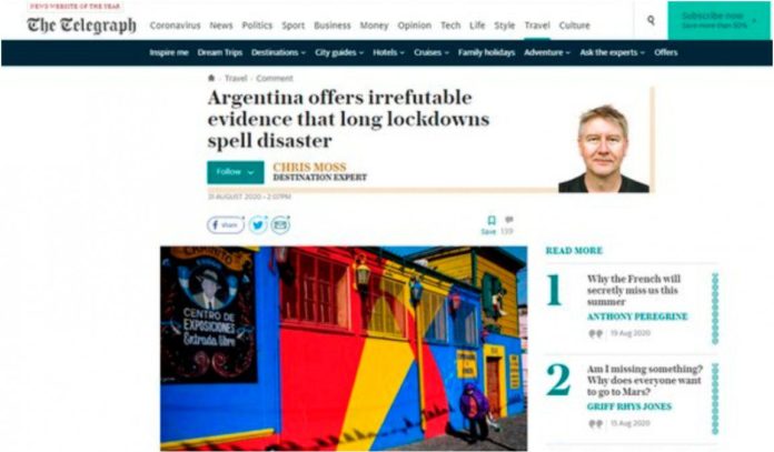 El diario británico The Telegraph publicó una dura crítica a la extensa cuarentena impuesta por el gobierno de Alberto Fernández. Bajo el título “Argentina ofrece evidencia irrefutable de que las cuarentenas largas invocan un desastre”, asegura que esta medida no pudo “salvar” al país del coronavirus y, por el contrario, “los casos y las muertes diarias continúan en aumento”.