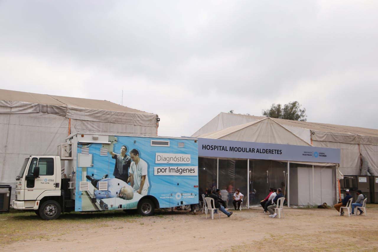 Este viernes el Ministerio de Salud Pública entregó al hospital modular de Alderetes nuevo equipamiento tecnológico para ampliar y eficientizar la atención para pacientes con Coronavirus: dispone de 30 bocas de oxígeno y recibe alrededor de 80 consultas diarias de casos sospechosos.