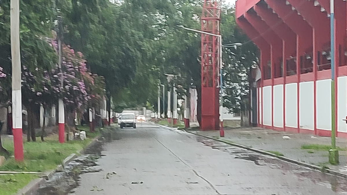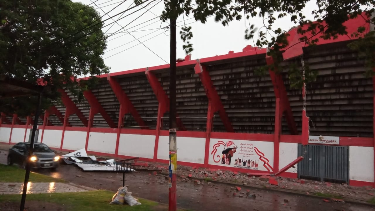 El estadio de San Martín, en el barrio de Ciudadela, sufrió las inclemencias del tiempo que se registran este jueves en la provincia de Tucumán.