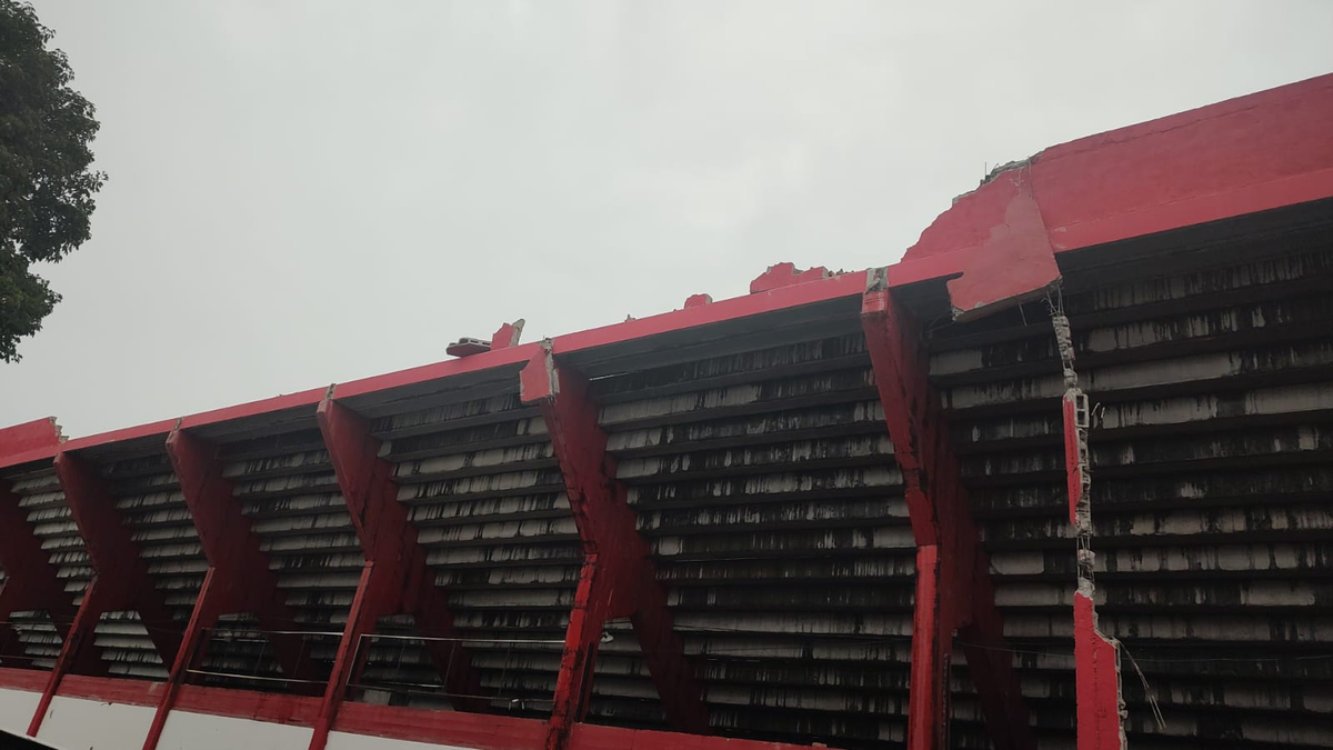 Estadio de San Martín: cayó un cartel y se dañó una columna