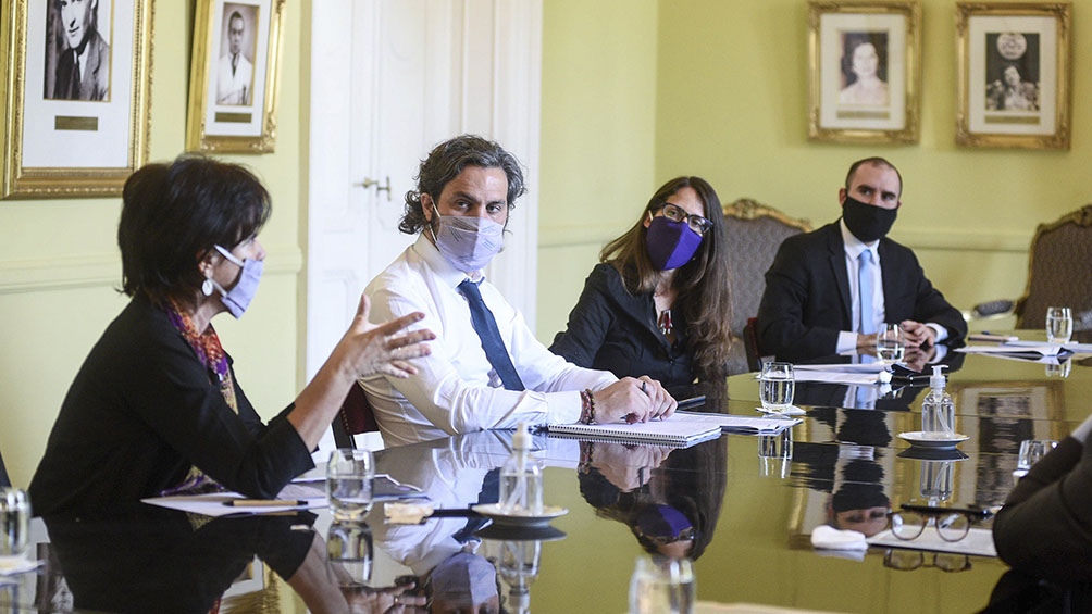 De la reunión tomaron parte los ministros de Economía, Martín Guzmán; de Trabajo, Claudio Moroni; de Desarrollo Productivo, Matías Kulfas; Mujeres, Géneros y Diversidad, Elizabeth Gómez Alcorta; la titular de la AFIP, Mercedes Marcó del Pont; y la vicejefa de Gabinete, Cecilia Todesca Bocco.