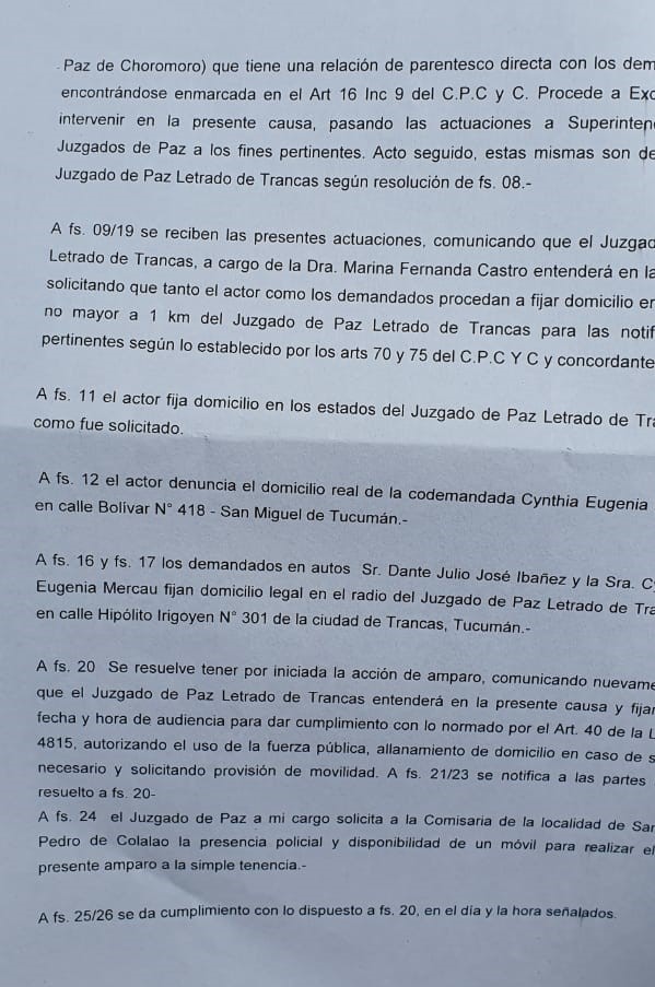 El propietario legítimo denunció el hecho ante la Corte e impulsó una demanda por amparo a la simple tenencia en contra del juez penal Julio Dante José Ibáñez.
