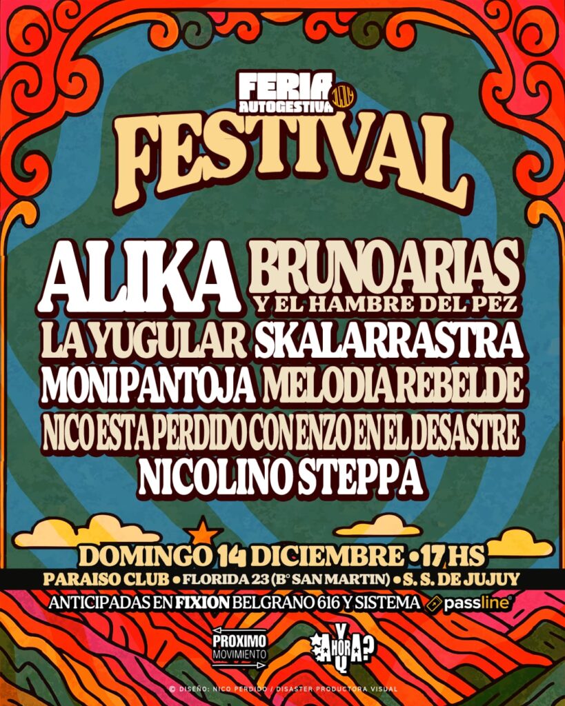 El domingo 14 de diciembre la dinámica cambiará para dar paso al gran Festival de la Feria. Las puertas se abrirán a las 17 horas para recibir a una grilla de artistas de renombre nacional y local. Los números centrales serán Alika y Bruno Arias y el Hambre del Pez. También subirán al escenario bandas potentes como La Yugular, Skalarrastra, Moni Pantoja, Melodía Rebelde, Nicolino Steppa y Nico está perdido con Enzo en el desastre.