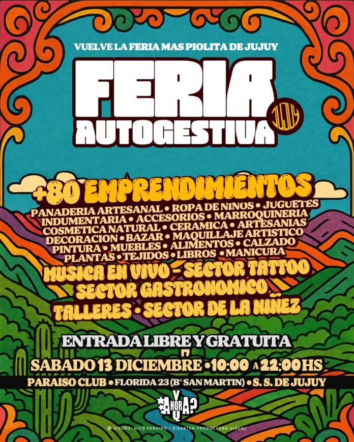 La organización confirmó la realización de una nueva edición de la Feria Autogestiva en Jujuy, un evento que promete dinamizar la agenda cultural de San Salvador durante el segundo fin de semana de diciembre. La cita tendrá lugar en las instalaciones del Paraíso Club, ubicado en calle Florida 23 del barrio San Martín. La propuesta se desdoblará en dos jornadas con modalidades diferentes: un sábado dedicado al emprendedurismo con entrada libre y un domingo de festival musical con acceso pago.