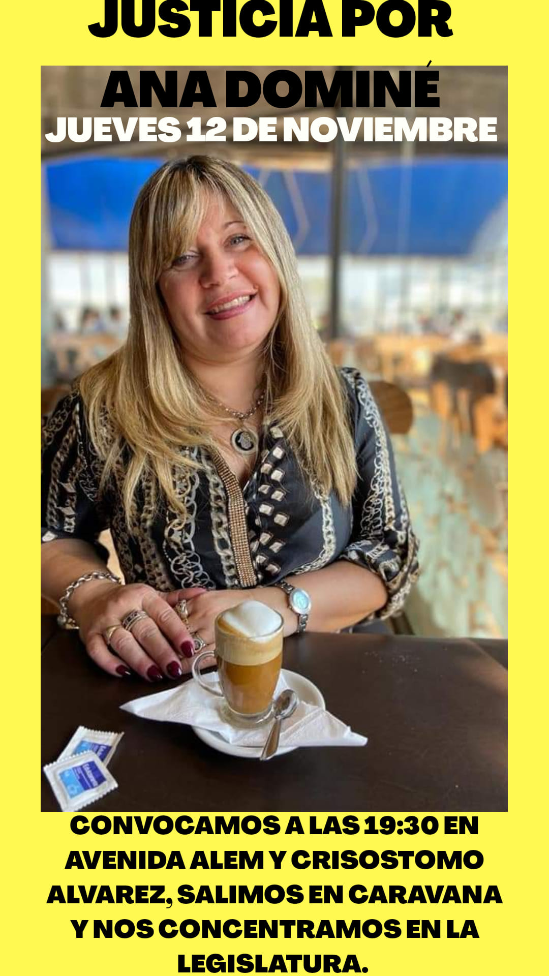 El crimen de Ana Dominé ocurrió el sábado 12 de septiembre por la noche, en la esquina de Crisóstomo Álvarez y avenida Alem de la capital tucumana, donde su hijo había detenido la marcha de la camioneta en la que circulaba junto a su madre para hacer una compra en un kiosco de la zona.