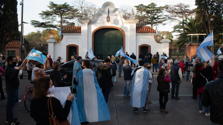 En el día del banderazo del 12 de octubre contra el Gobierno nacional, dos grupos antagónicos -uno a favor de Alberto Fernández y otros en contra- se reunieron este lunes frente a la Quinta de Olivos para expresarse.