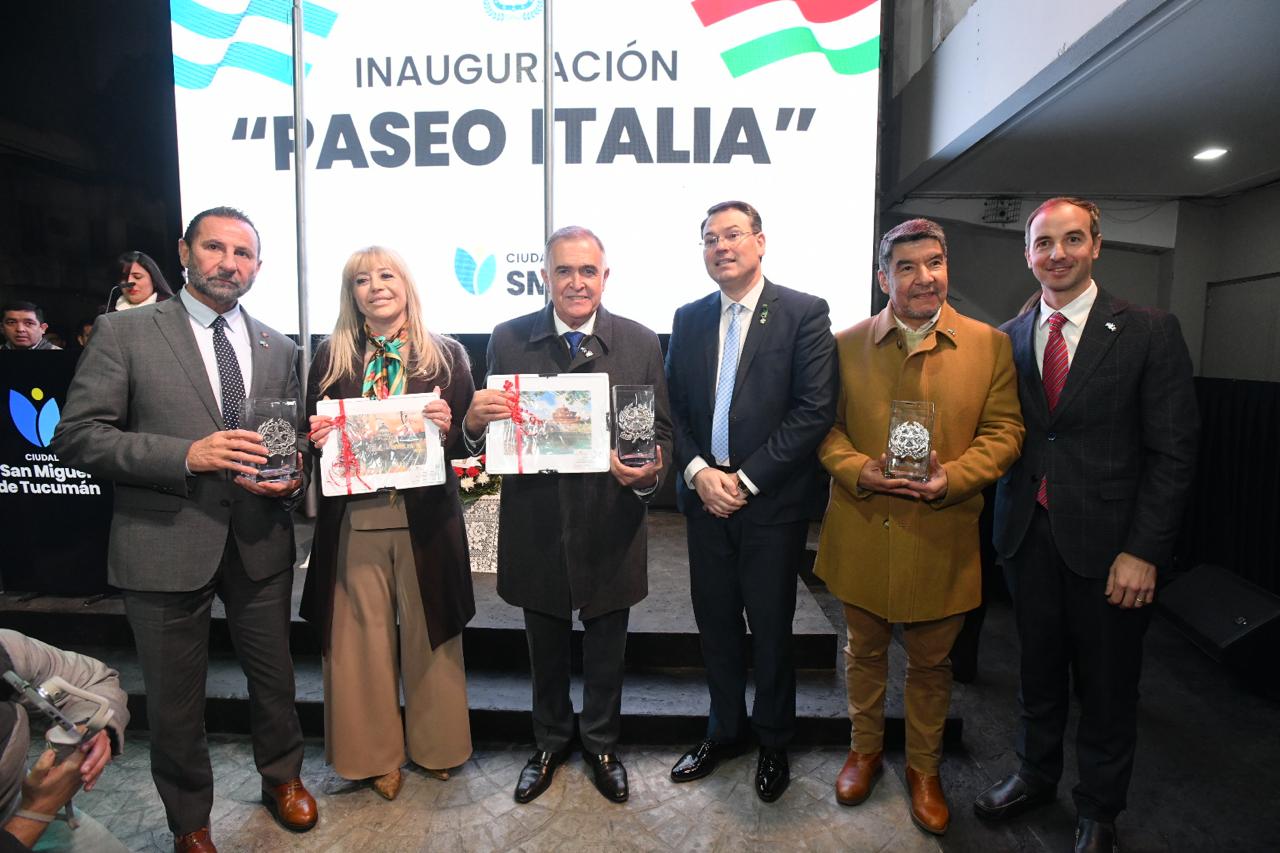 El gobernador Osvaldo Jaldo asistió esta noche a la inauguración del “Paseo Italia”, situado en la calle 24 de Septiembre al 1000, en la capital tucumana. Este evento se realizó en el contexto del “Día del Inmigrante Italiano”, celebrado el 3 de junio en honor al nacimiento del general Manuel Belgrano, descendiente de italianos.