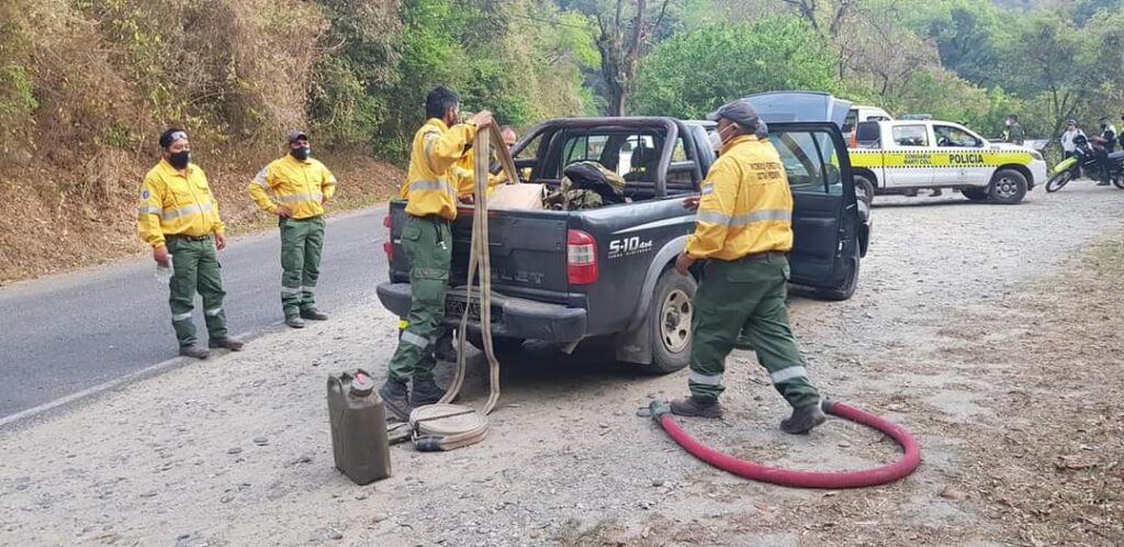 Hoy combatimos el fuego entre la Policía de Tucumán, Bomberos de Yerba Buena y las brigadas de incendio de la Policia Federal, Parque Sierra San Javier y Comuna de San Javier; todo bajo la coordinación de Defensa Civil.