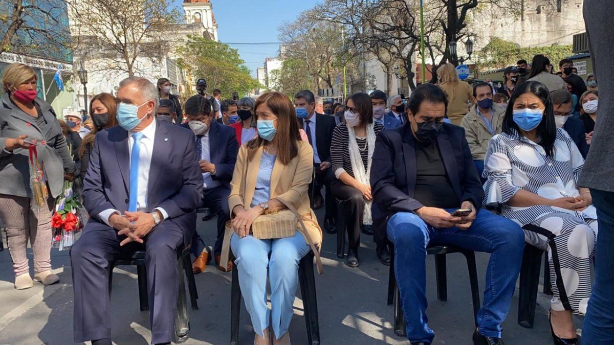 Lo acompañan el intendente de San Miguel de Tucumán, Germán Alfaro y el presidente subrogante de la Legislatuta, Sergio Mansilla. También participan distintos funcionarios provinciales y municipales.