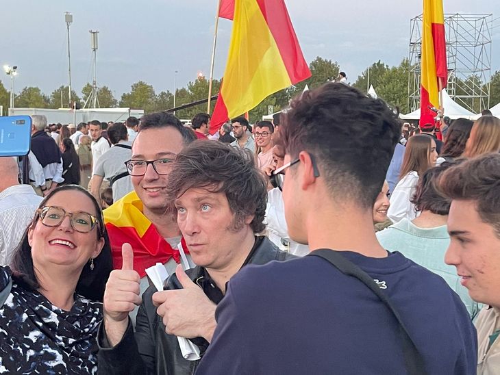 “No creí que de este lado del Atlántico me conocían tanto”, empezó diciendo el líder libertario. “¡Viva la libertad, carajo! ¡Viva España! ¡Viva VOX! ¡Viva Santiago Abascal! [presidente del partido] ¡Vamos contra los zurdos!”, vociferó el sudamericano. El público, respondía gritando: “¡Viva!”