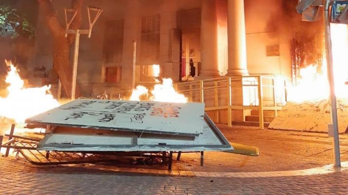 Un grupo de manifestantes prendió fuego una parte de la legislatura provincial