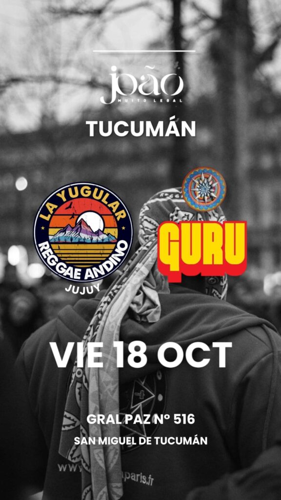 La Yugular se presentará en Tucumán el viernes 18 de octubre en Joao (General Paz 516), ofreciendo una noche llena de su característico reggae andino para el público local.