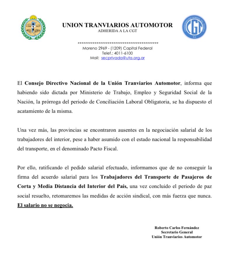 “Es hasta el lunes”, confirmó Alfonso Canuto, secretario adjunto de UTA seccional provincial, durante un móvil en vivo con eltucumano.com. “Es el último paso que tiene el ministerio como herramienta. Llegada la finalización, las partes quedan liberadas a los fines de ampliar o tomar algún tipo de actitud para solucionar el tema de los salarios”, agregó. Al mismo tiempo, criticó la falta de participación del gobierno nacional, que no envió a ningún representante para participar de las reuniones que mantuvieron desde las 15 de este lunes.