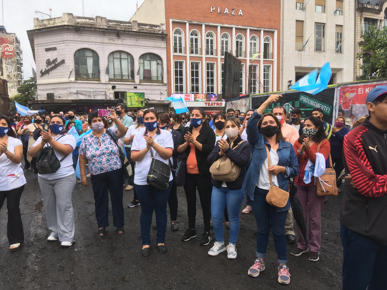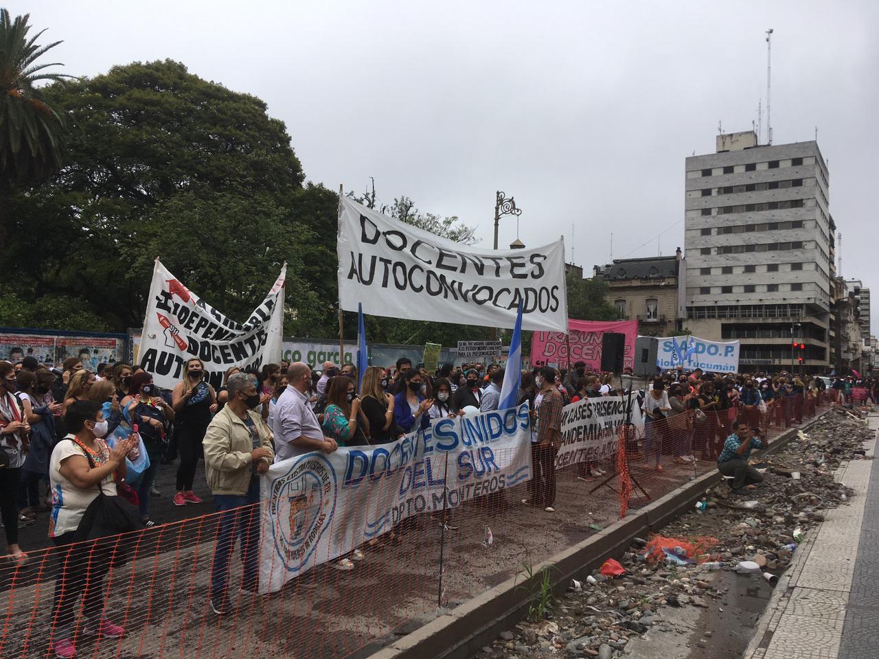 A cuatro días de la fecha estipulada para el inicio del ciclo lectivo 2021, con la novedad del regreso a la presencialidad luego del primer año de la pandemia, un importante sector docente, con diferentes filiaciones gremiales, se manifiestas frente a Casa de Gobierno, sobre calle 25 de Mayo, para mostrar su disconformidad contra el regreso a las clases presenciales.