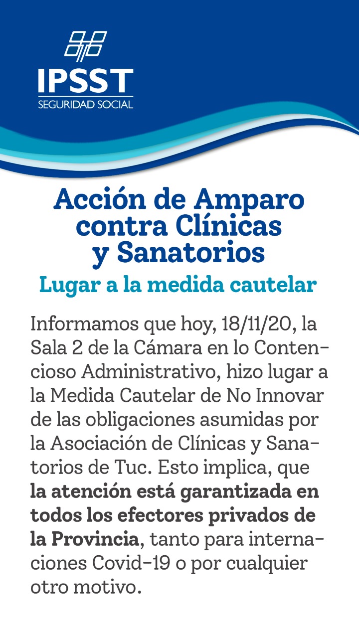 EI IPSST remarcó que la Sala 2 de la Cámara en lo Contencioso Administrativo “hizo lugar a la Medida Cautelar de No Innovar de las obligaciones asumidas por la Asociación de Clínicas y Sanatorios de Tucumán”.