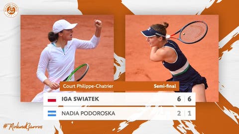 La rosarina Nadia Podoroska perdió en la semifinal de Roland Garros contra la polaca Iga Swiatek por 6-2 y 6-1. De esta forma, se frustró la oportunidad de ser la primera argentina en acceder a la final del Grand Slam parisino.