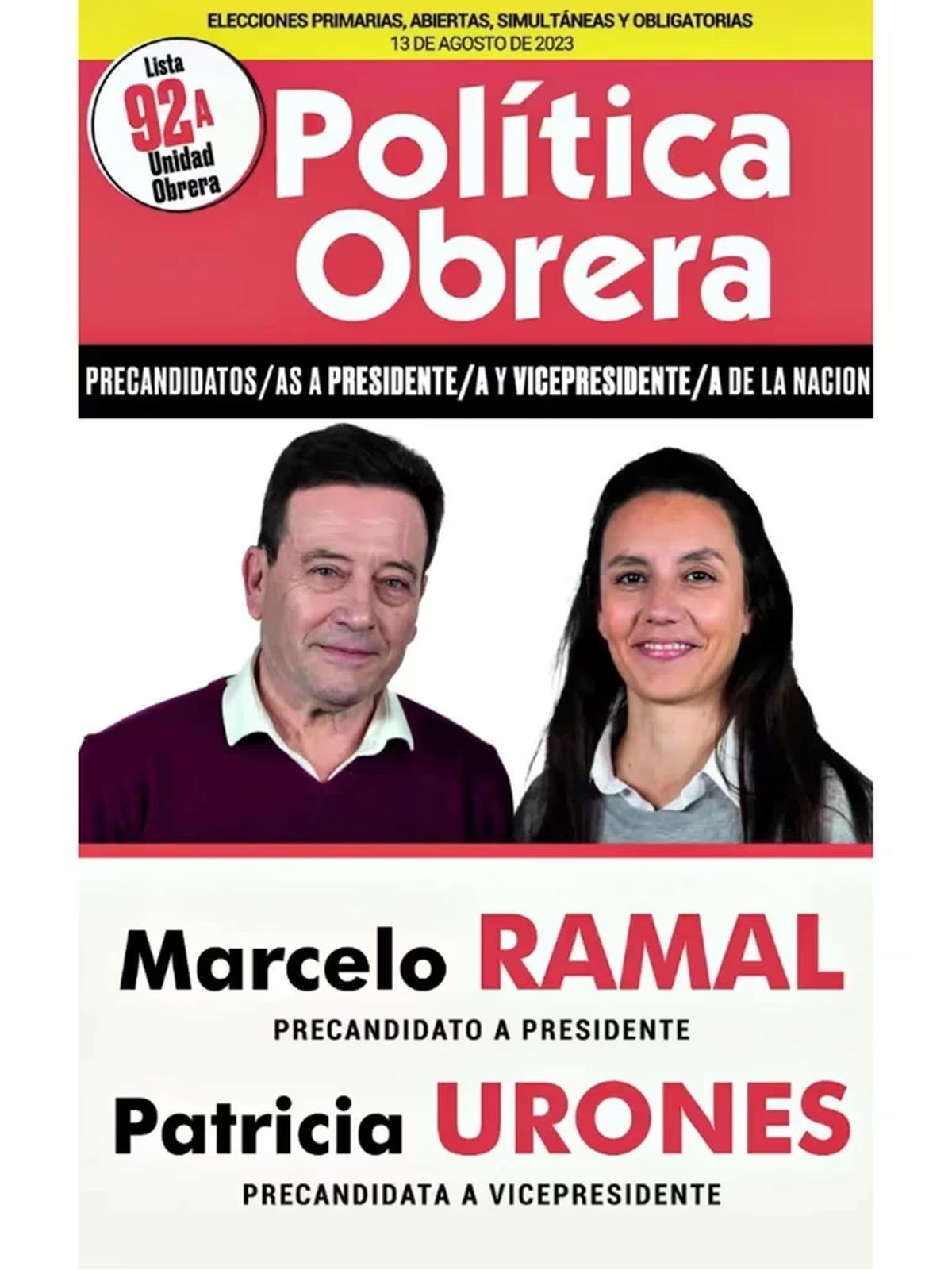 10) Lista Unidad Obrera – Marcelo Ramal – Patricia Urones