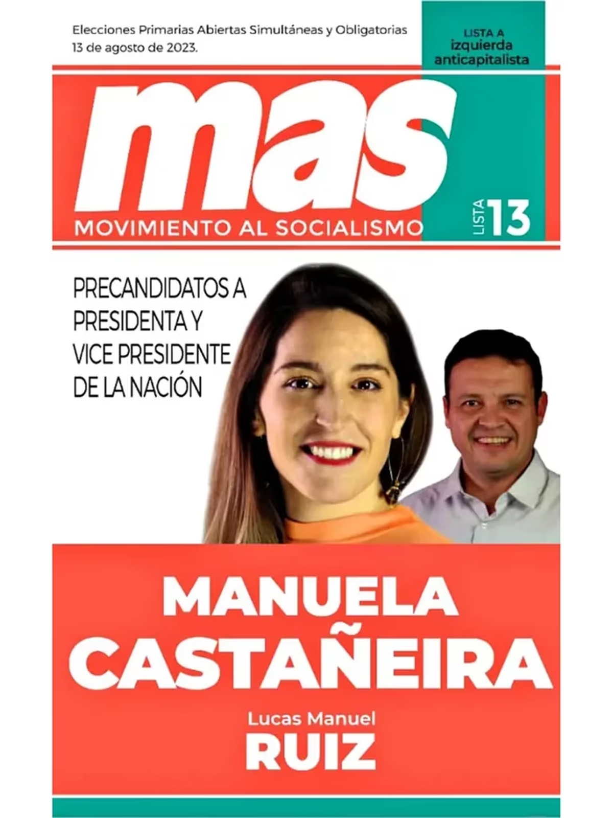 9) Lista Izquierda Anticapitalista: Manuela Castañeira – Lucas Ruiz