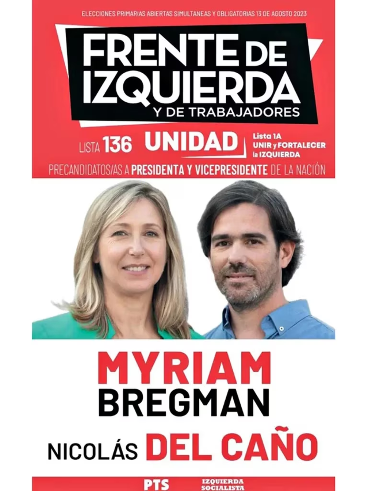 7) Lista Unir y Fortalecer la Izquierda: Myriam Bregman – Nicolás del Caño (PTS)