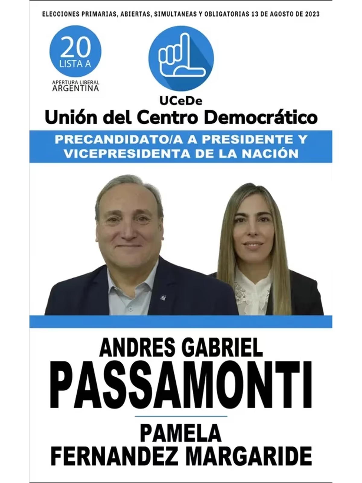 16) Lista Apertura Liberal Argentina: Andrés Passamonti – Pamela Margaride Fernandez