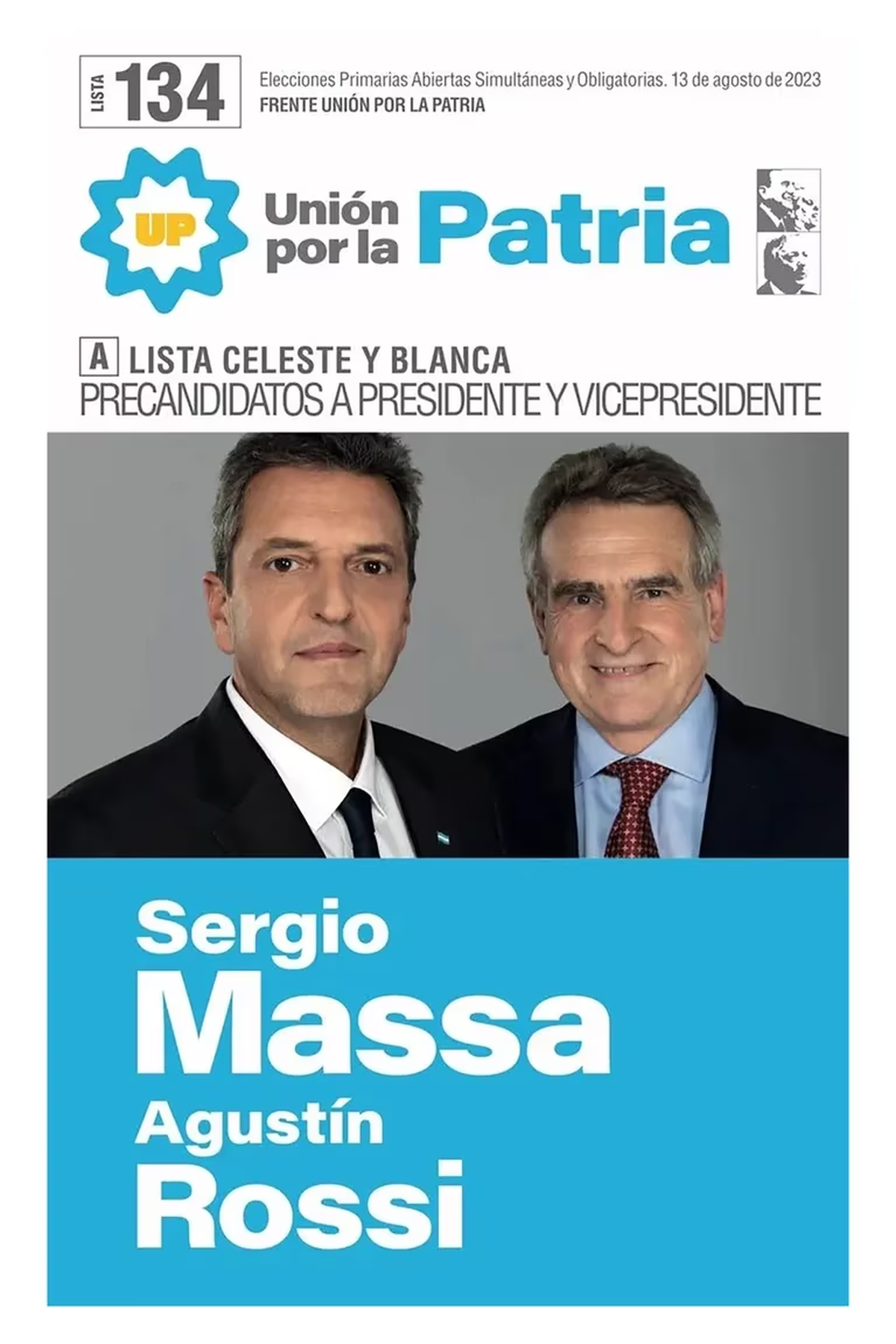 1. Lista A) Celeste y Blanca Sergio Massa – Agustín Rossi