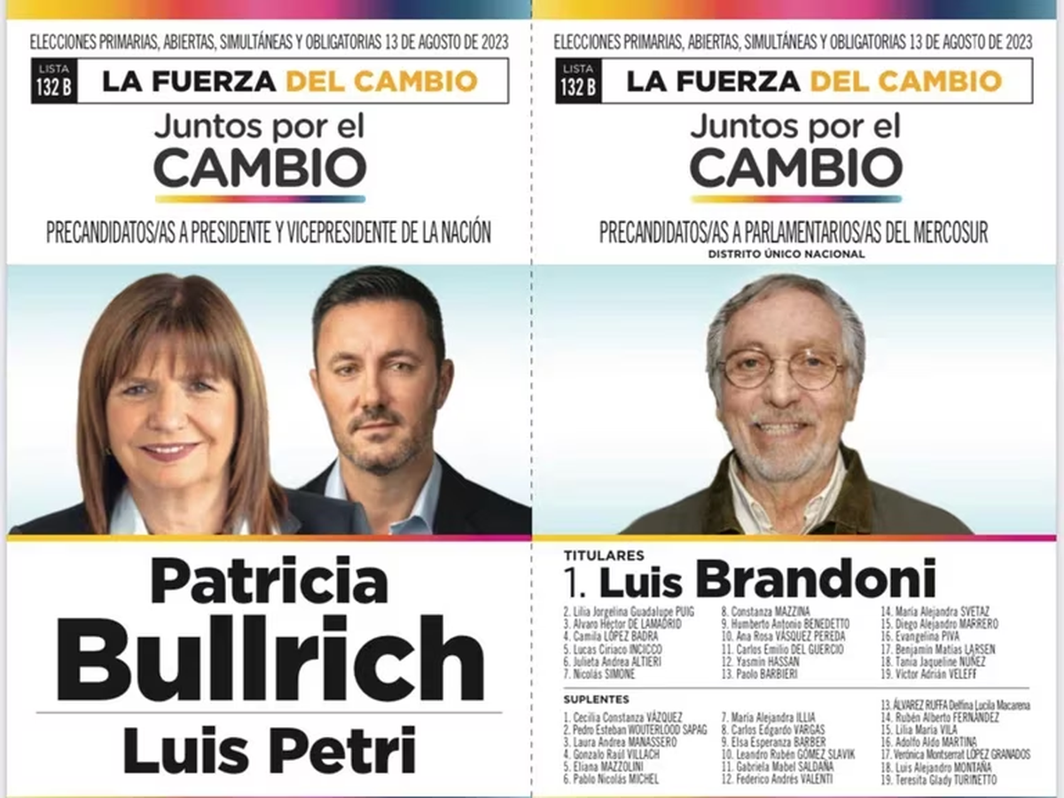 4. Lista B) La Fuerza del Cambio: Patricia Bullrich – Luis Petri