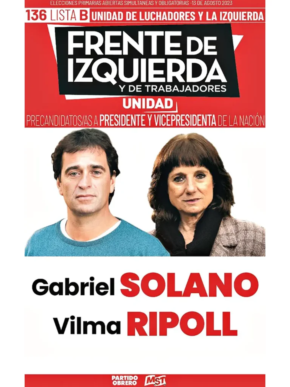 8) Lista Unidad de Luchadores y la izquierda: Gabriel Solano (PO) – Vilma Ripoll (MST)