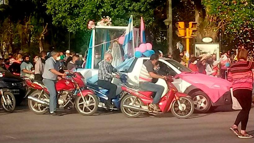 Si bien, para este año de pandemia, la celebración iba a estar centrada en un recorrido de la figura, los vecinos de la ciudad se agolparon en el paso de Virgen, sin mantener la distancia social recomendada para evitar la propagación del coronavirus.