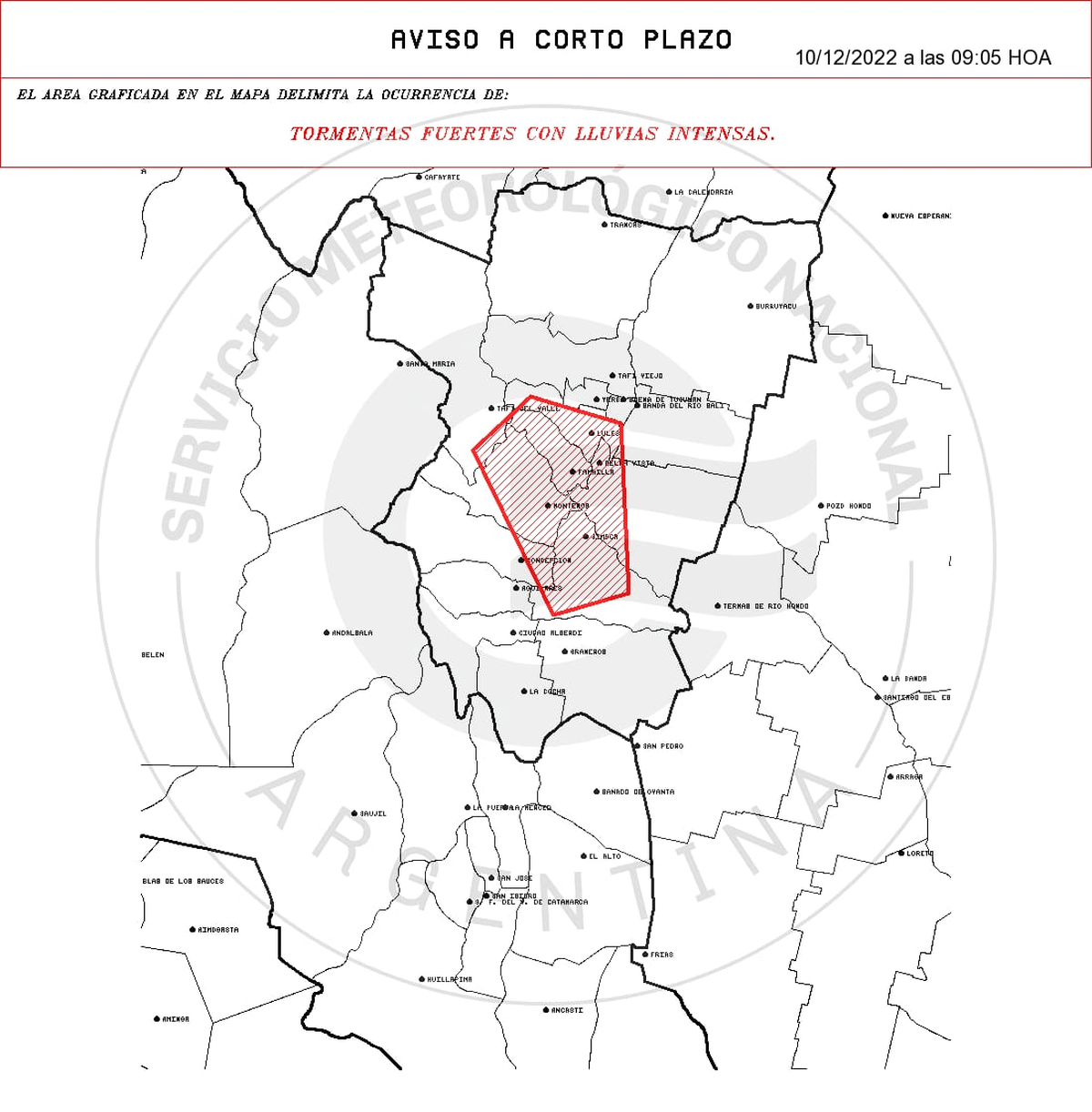 Si bien las lluvias afectan a todo el territorio provincial, de acuerdo al informe de las 9 de la mañana de este sábado del Servicio Meteorológico Nacional (SMN) Tucumán se encuentra en alerta amarilla por tormentas fuertes con lluvias intensas. Una advertencia que rige especialmente para al menos siete de los 17 departamentos del territorio provincial: Chicligasta, Cruz Alta, Famaillá, Leales, Lules, Monteros y Simoca.
