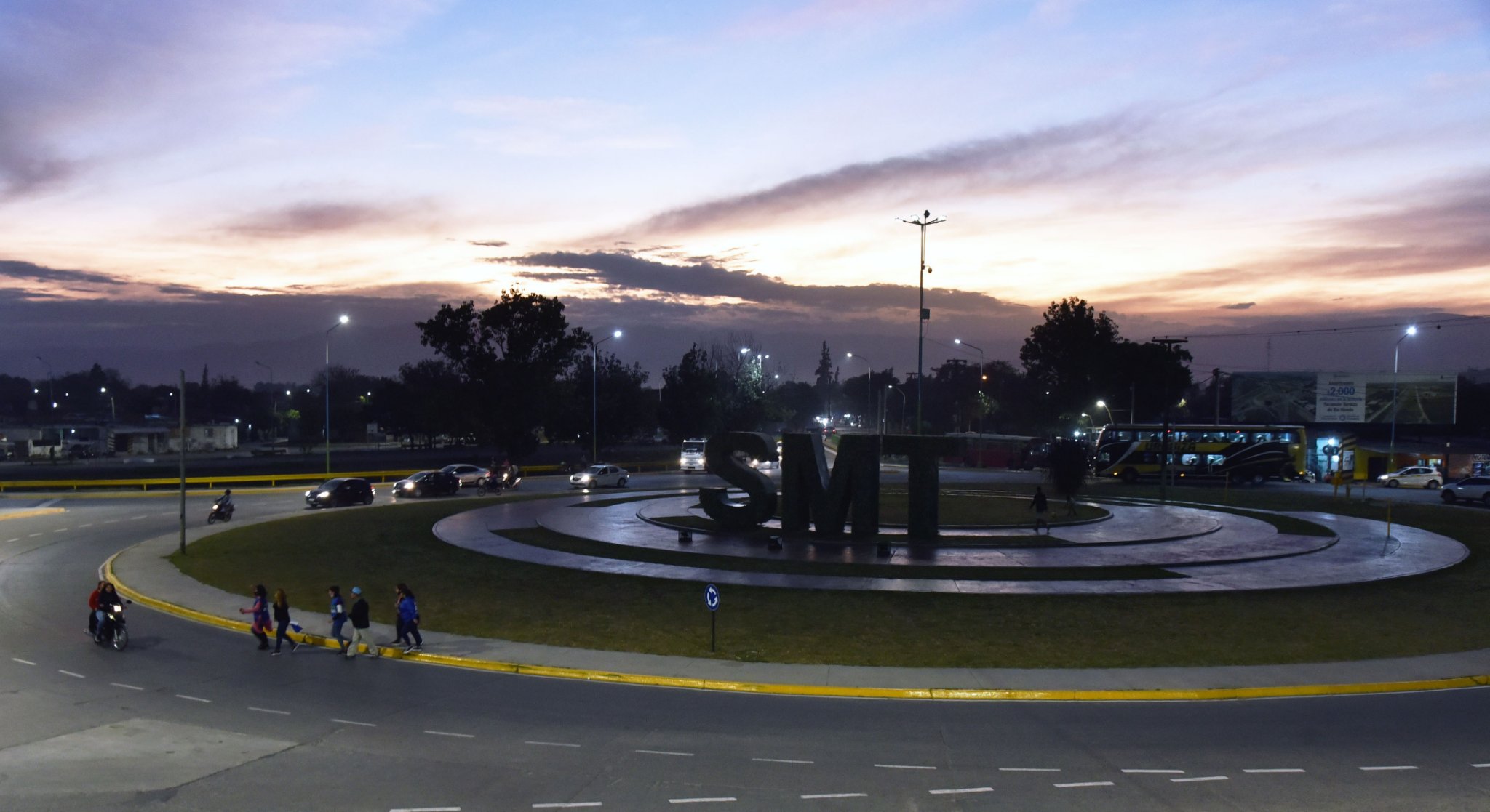 – La rotonda de San Cayetano fue reconstruida con un diseño en anillos que alterna hormigón con franjas de césped, y se instalaron tres letras corpóreas metálicas con las siglas SMT, revestidas con vegetación.