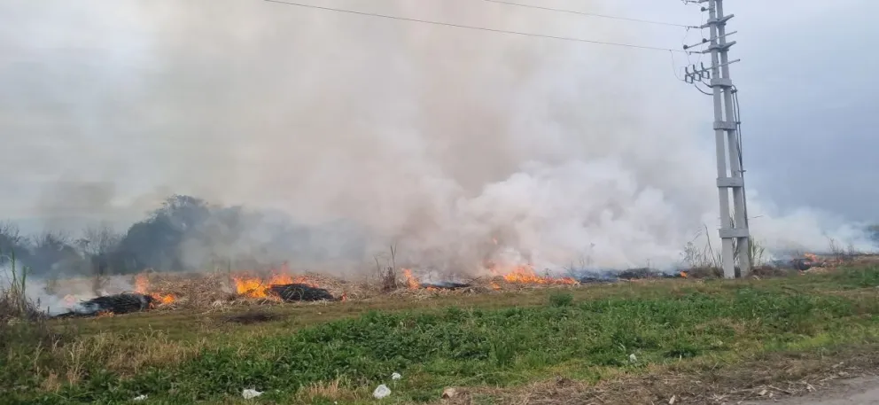 Una quema de cañaverales afectó la visibilidad el lunes por la tarde en cercanías de la localidad de El Polear, a un costado de la Ruta Nacional 38 (vieja traza).