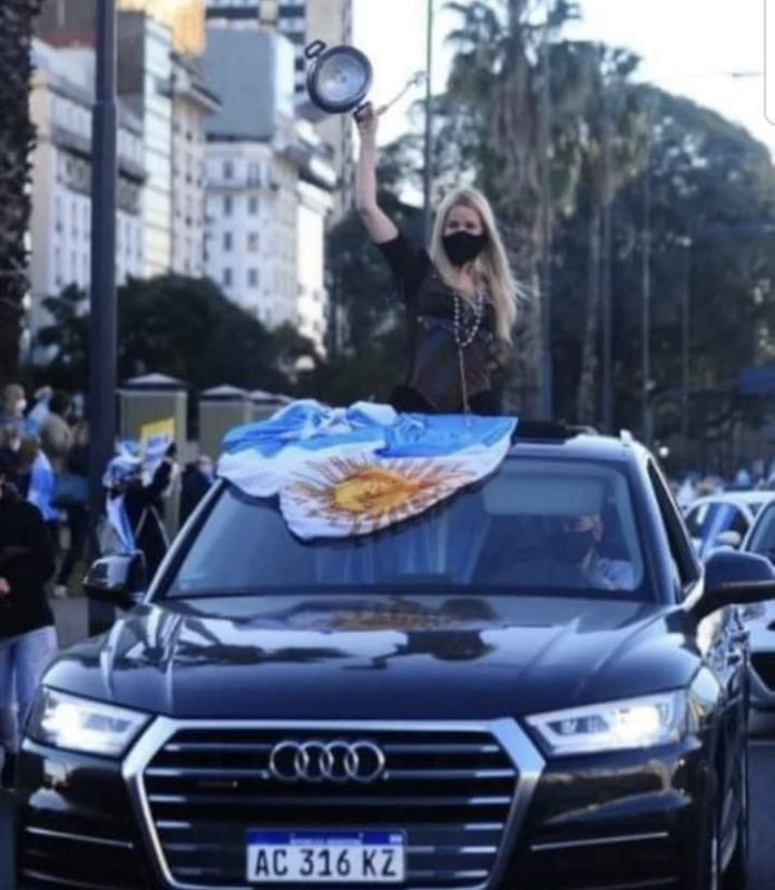 María Gloria Estévez Craig escogió una célebre frase de la diseñadora francesa Coco Chanel para actualizar su estado de WhatsApp, por última vez, el 30 de enero de 2015. Para la mujer que vive en un barrio privado de Moreno aquella reflexión no perdió vigencia. Más aún cuando decide responder con estas palabras la viralización de una imagen que la tiene como protagonista, a bordo de una camioneta Audi Q5, sosteniendo la bandera argentina, en la movilización del pasado lunes contra el gobierno nacional.