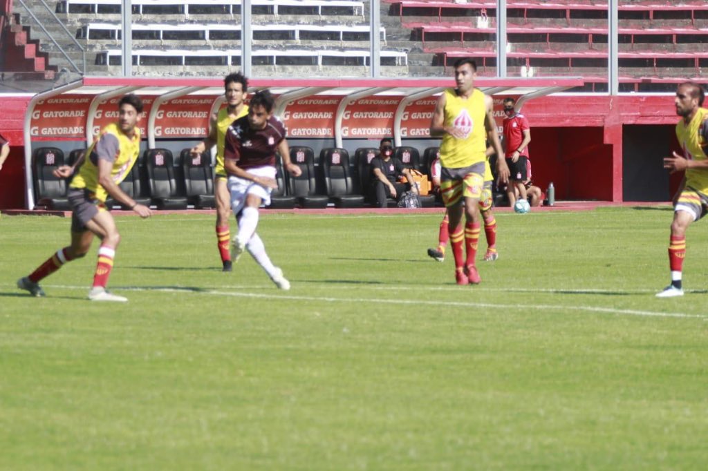El juego se dividió en tres tiempos de 35 minutos lo que permitió que casi todo el plantel tuviera un rato de fútbol. Desde el arranque el Santo salió a la cancha con el esquema con el que solía arrancar antes de la suspensión: cuatro defensores, 5 volantes, y un delantero de área.