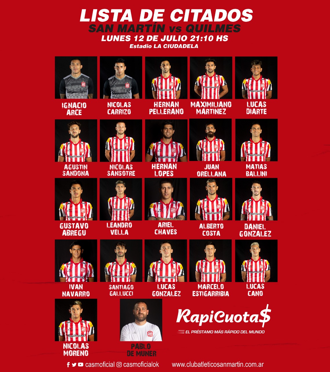 Además se destacan los regresos de Juan Orellana que seguramente estará en el Banco tras 6 fechas; y de Iván Navarro que nunca había sido convocado por De Muner y que ahora, será unas de las alternativas para ingresar en algún momento del partido.