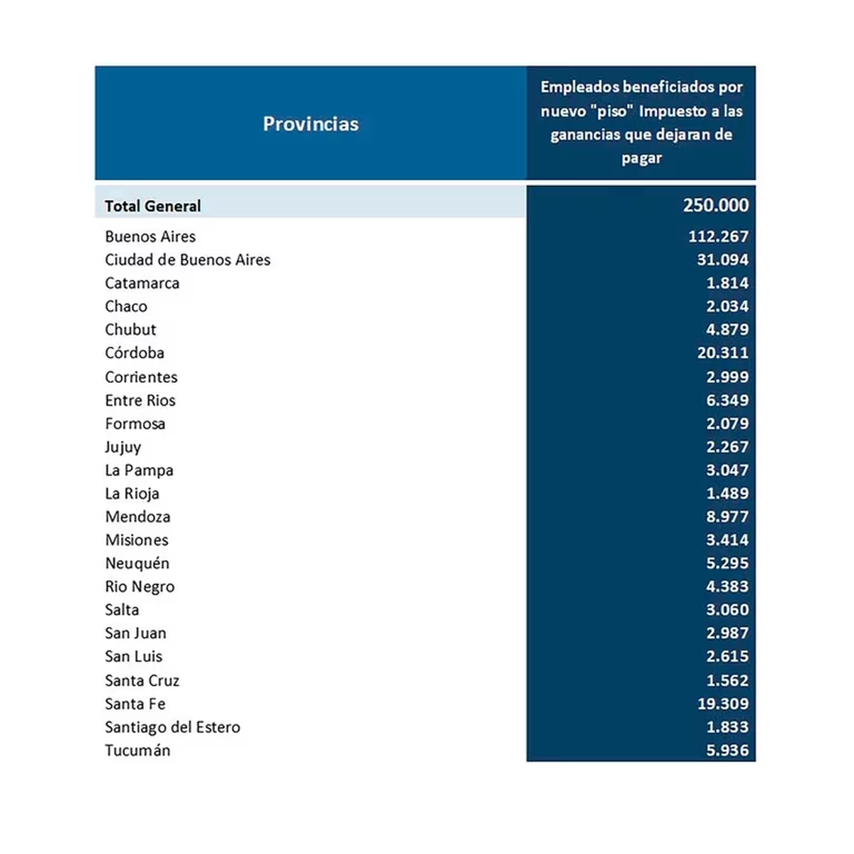 La modificación propuesta permitirá una reducción de trabajadores que pagan impuesto a las ganancias. Se beneficiarán aproximadamente 250.000 empleados en relación de dependencia.