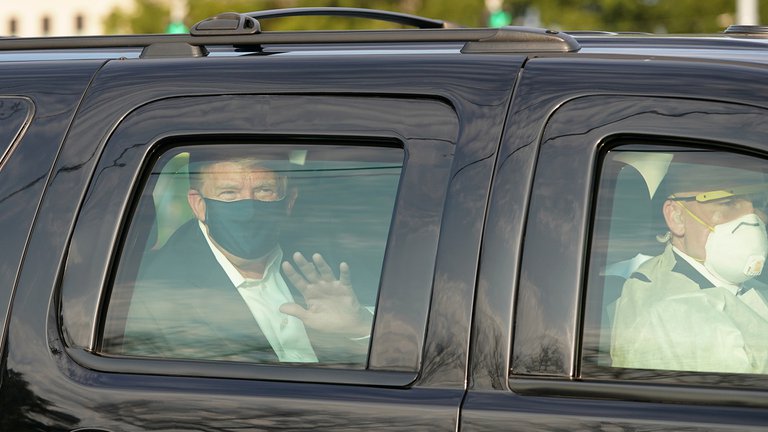 Hoy, más temprano del saludo en camioneta, los médicos del presidente adelantaron que Trump podría retornar el lunes a la Casa Blanca y seguir allí su tratamiento. “Si sus síntomas siguen mejorando y se mantiene activo, con una saturación de oxígeno en sangre adecuada y sin fiebre, vuelve mañana”, indicó Brian Garibaldi, uno de los miembros del equipo médico del hospital militar en el que se encuentra.