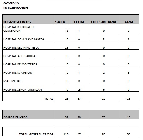 Asimismo, se informa el fallecimiento de una paciente, la cual estaba siendo asistida en el sector público:-Una mujer de 72 años con comorbilidades, internada en la terapia intensiva del sector público, con asistencia respiratoria mecánica, con neumonía por Covid-19.