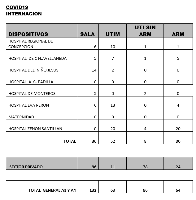 Asimismo, se informa el fallecimiento de 5 pacientes con Coronavirus en las úlstimas 24 horas: -Una mujer de 62 años con comorbilidades, internada en terapia intensiva del sector privado, en asistencia respiratoria mecánica, con neumonía por Covid-19. -Una mujer de 72 años con comorbilidades, internada en terapia intensiva del sector privado, en asistencia respiratoria mecánica, con neumonía por Covid-19. -Una mujer de 82 años con comorbilidades, internada en terapia intensiva del sector privado, en asistencia respiratoria mecánica, con neumonía por Covid-19. -Una mujer de 65 años con comorbilidades, internada en terapia intensiva del sector público, en asistencia respiratoria mecánica, con neumonía por Covid-19.