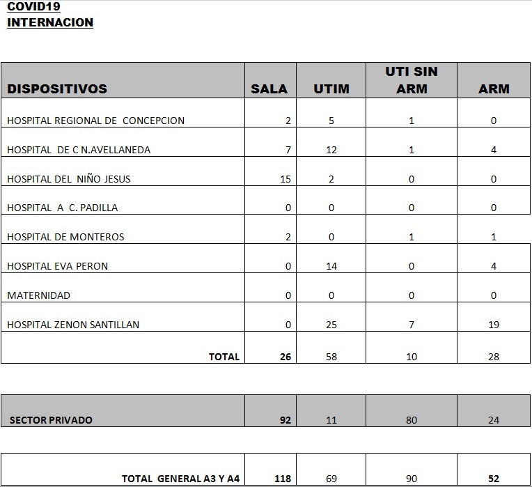 Asimismo, se informó el fallecimiento de tres pacientes, de los cuales dos estaban siendo asistidos en el sector público y uno en el privado: